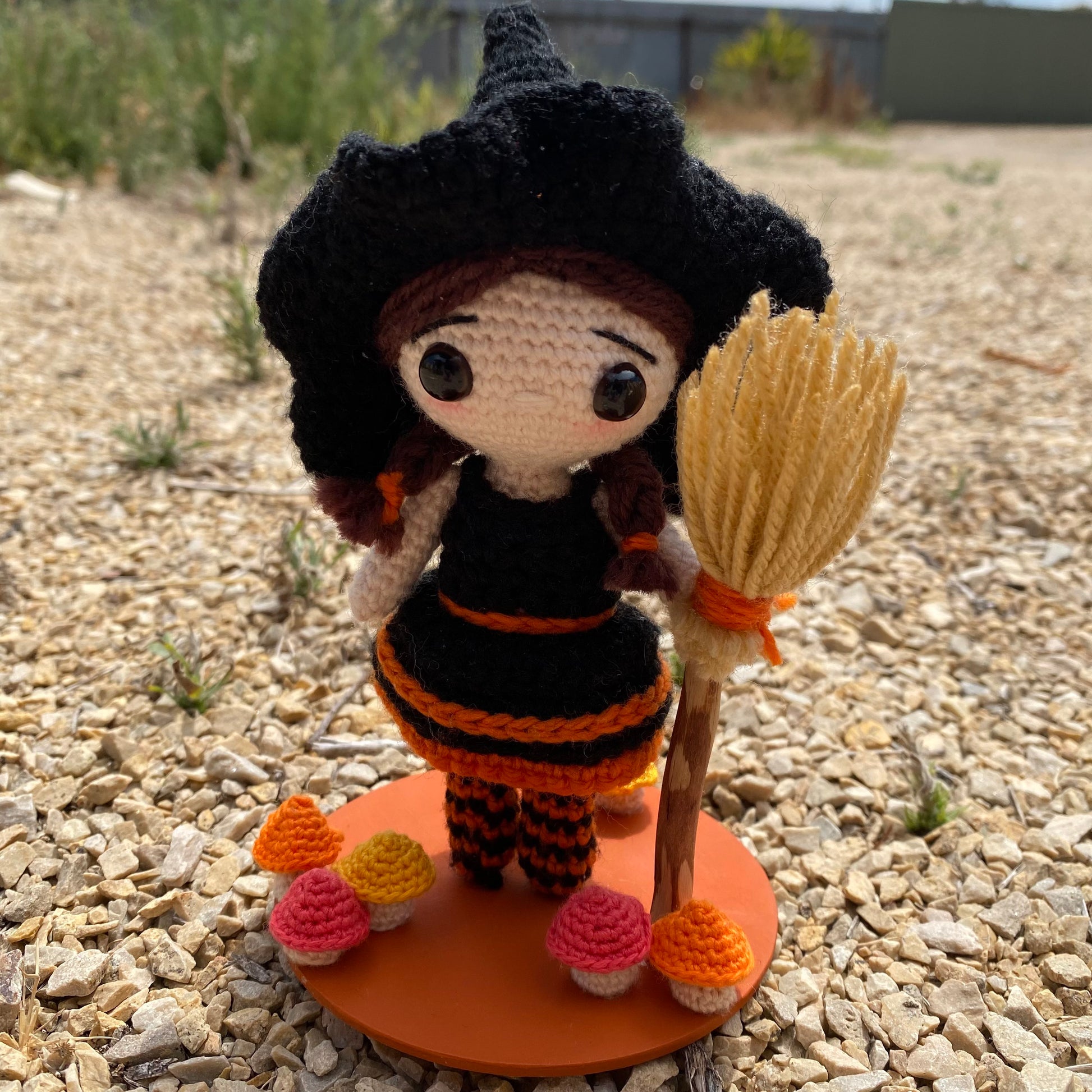 The pattern was designed using a 3.5mm hook and a 3 weight DK yarn and is approximately 14cm tall.
